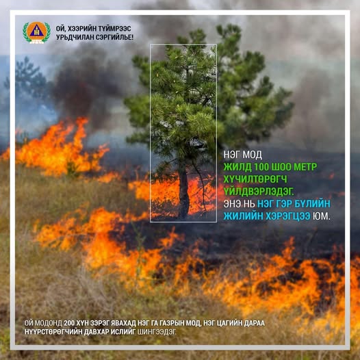 Гэр сууц, хашаа хорооны гадуур түймрээс хамгаалах зурвас татах, гал унтраах багаж хэрэгслийг бэлтгэх зэргээр ой, хээрийн түймрээс урьдчилан сэргийлэх арга хэмжээ авахыг ОНЦГОЙЛОН анхааруулж байна.